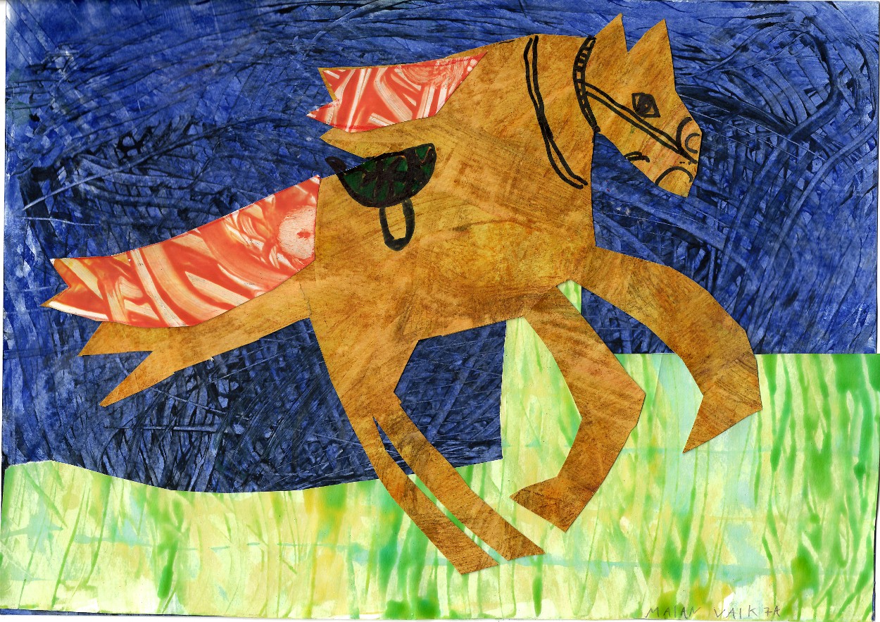 Maian kujutas oma hobust kollaažitehnikas ja Adeele joonistas hobuse söega. Õpilasi juhendas kunstiõpetaja Mari Mesilane.